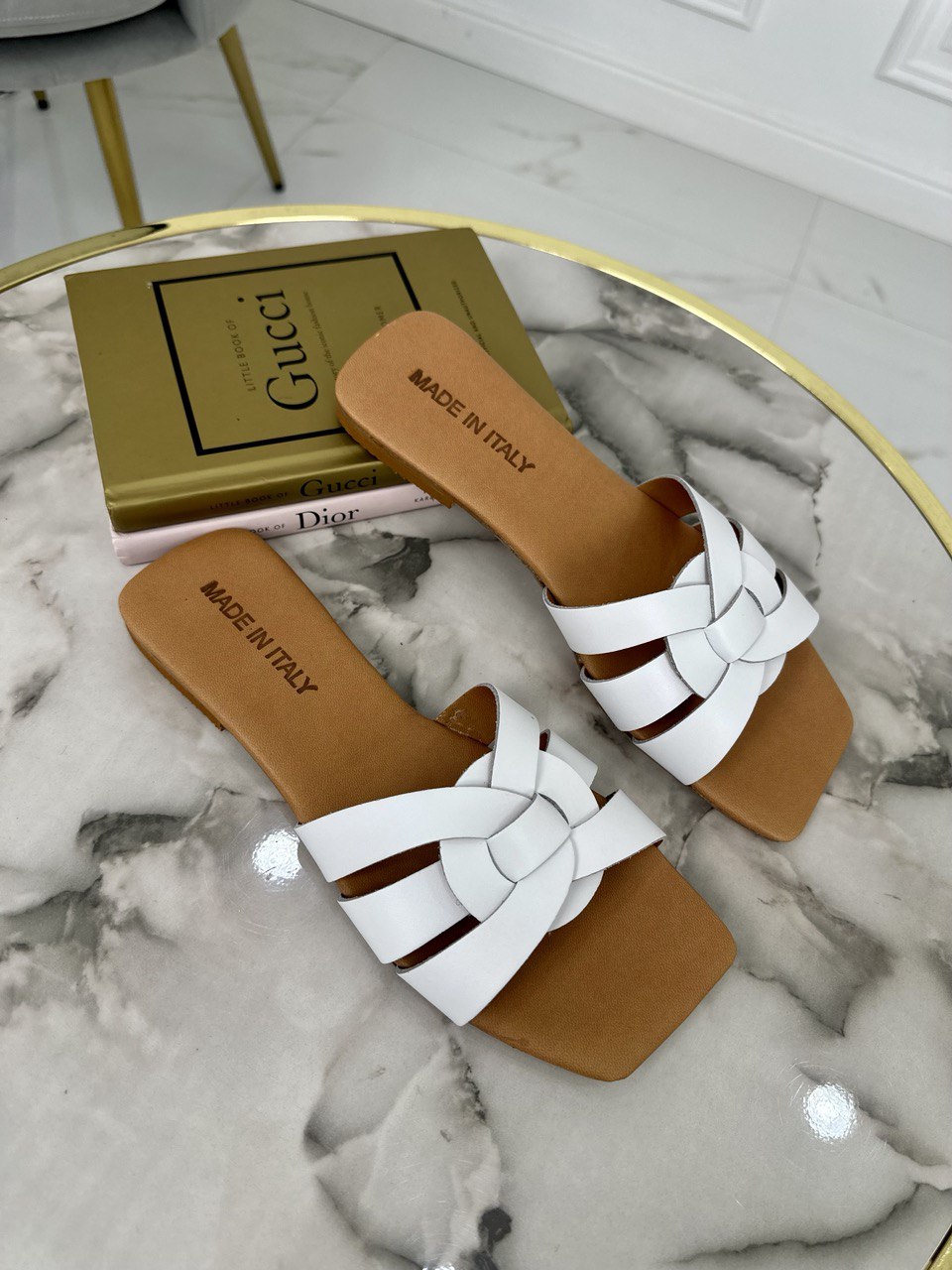 Pantofolina in ecopelle con fascia larga , fondo in cuoio.