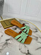 Pantofolina in ecopelle con fascia larga , fondo in cuoio.