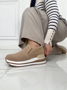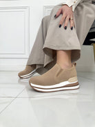 Scarpetta in tessuto con tomaia a puntini , elastici laterali e tacco in gomma di 4 cm