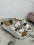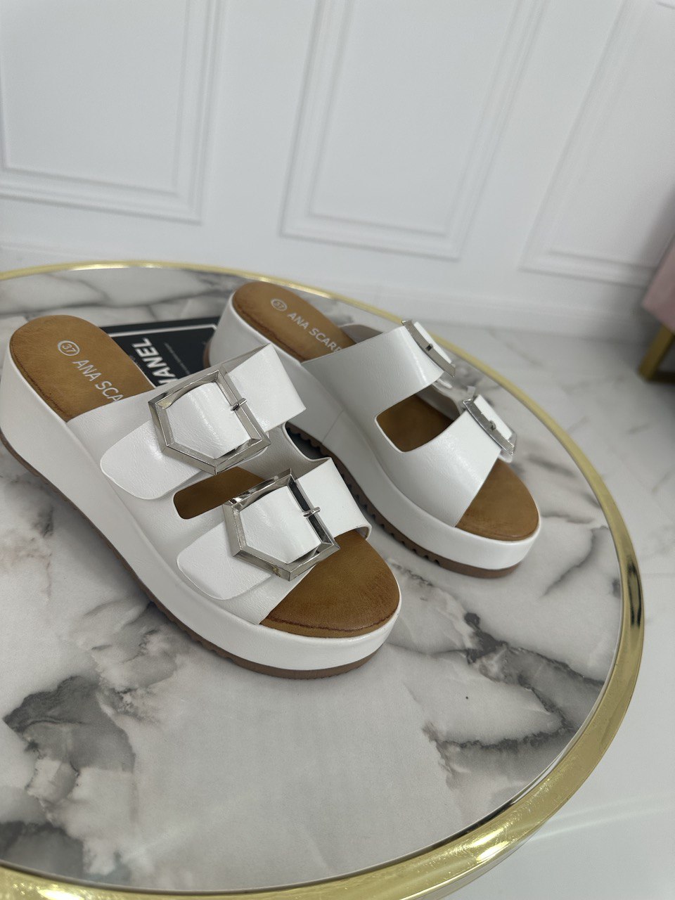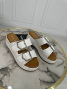 Pantofolina in ecopelle con fibbie regolabili , con fondo in gomma di 3 cm