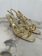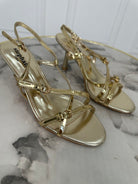 Sandali in ecopelle con fasce sottili regolabili con fibbie , chiusura con cinturino e tacco di 6 cm