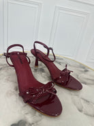 Sandali in ecopelle con fasce sottili decorate con fiocco , chiusura con cinturino tacco di 7 cm