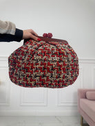 Borsa in tessuto decorata con paillettes , chiusura a portafoglio e tracolla da spalla in catena removibile.