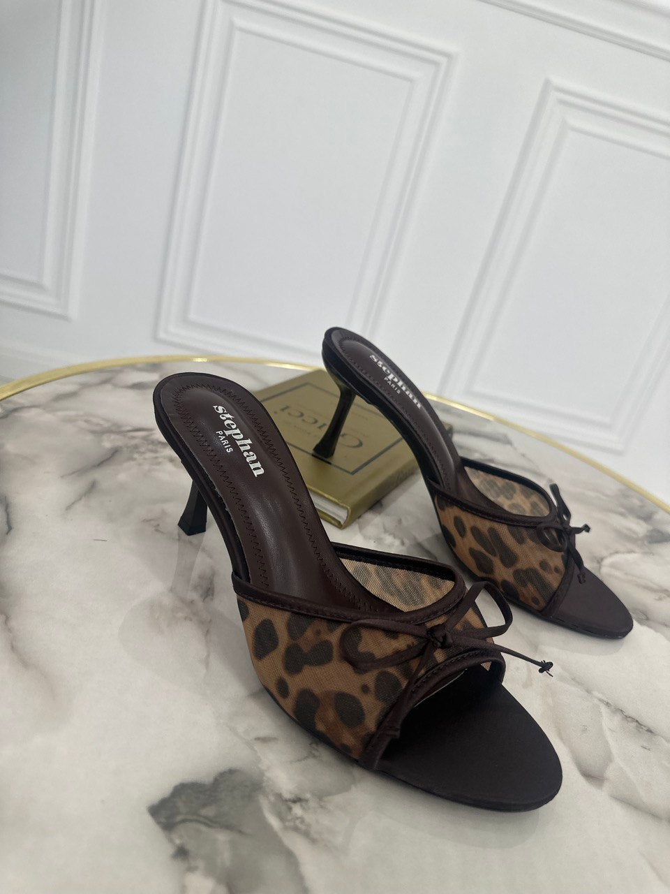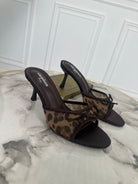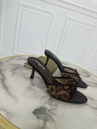 Sandali in raso con fascia larga decorata con fiocco , aperti sul retro con tacco di 7 cm