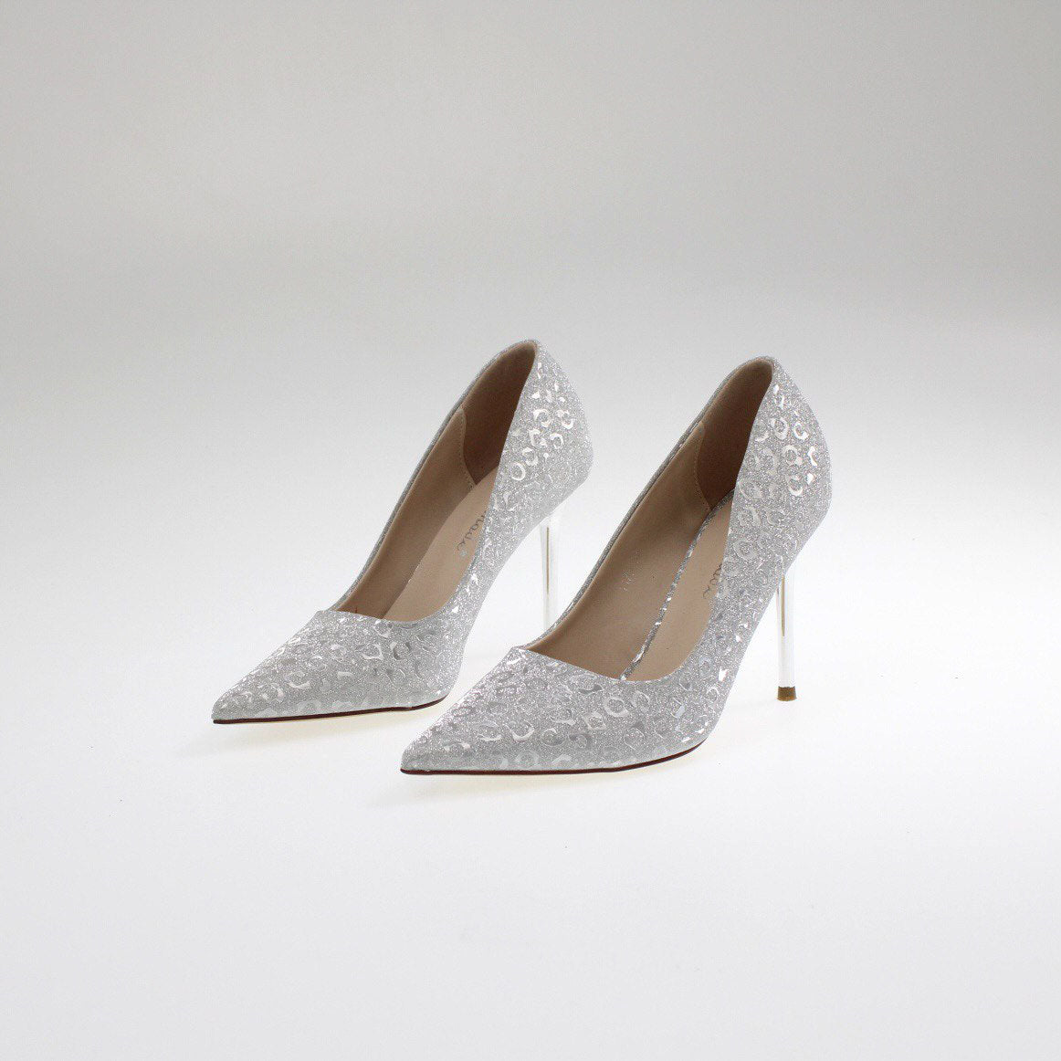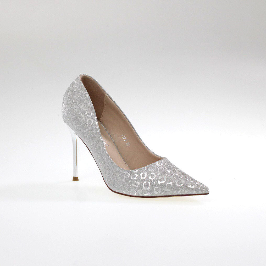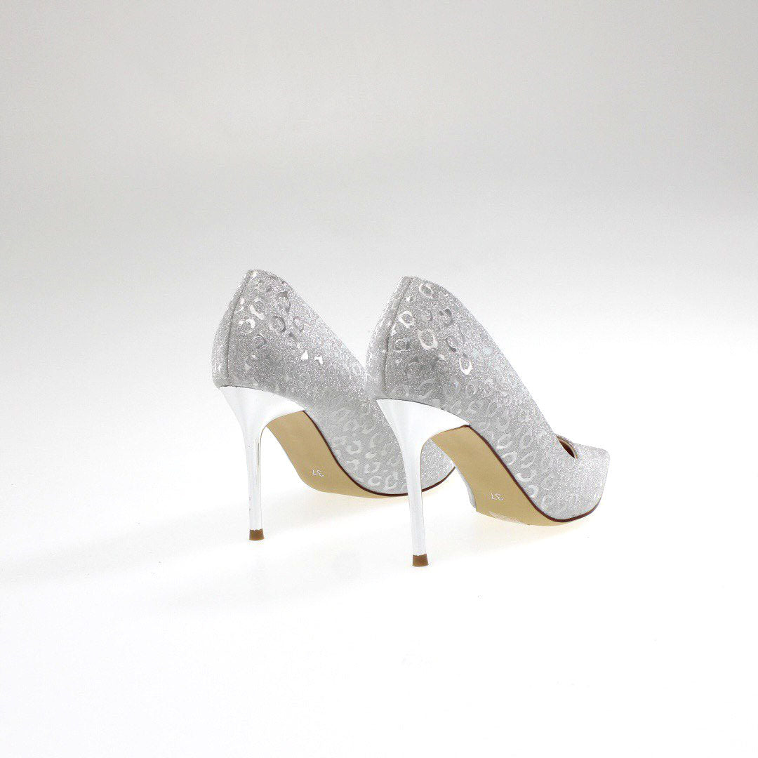 Decolletè a punta con tomaia glitterata e tacco a spillo di 10 cm
