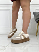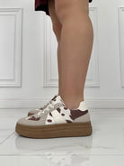 Scarpetta in ecopelle , chiusura con lacci e fondo in gomma di 3 cm