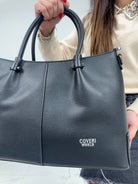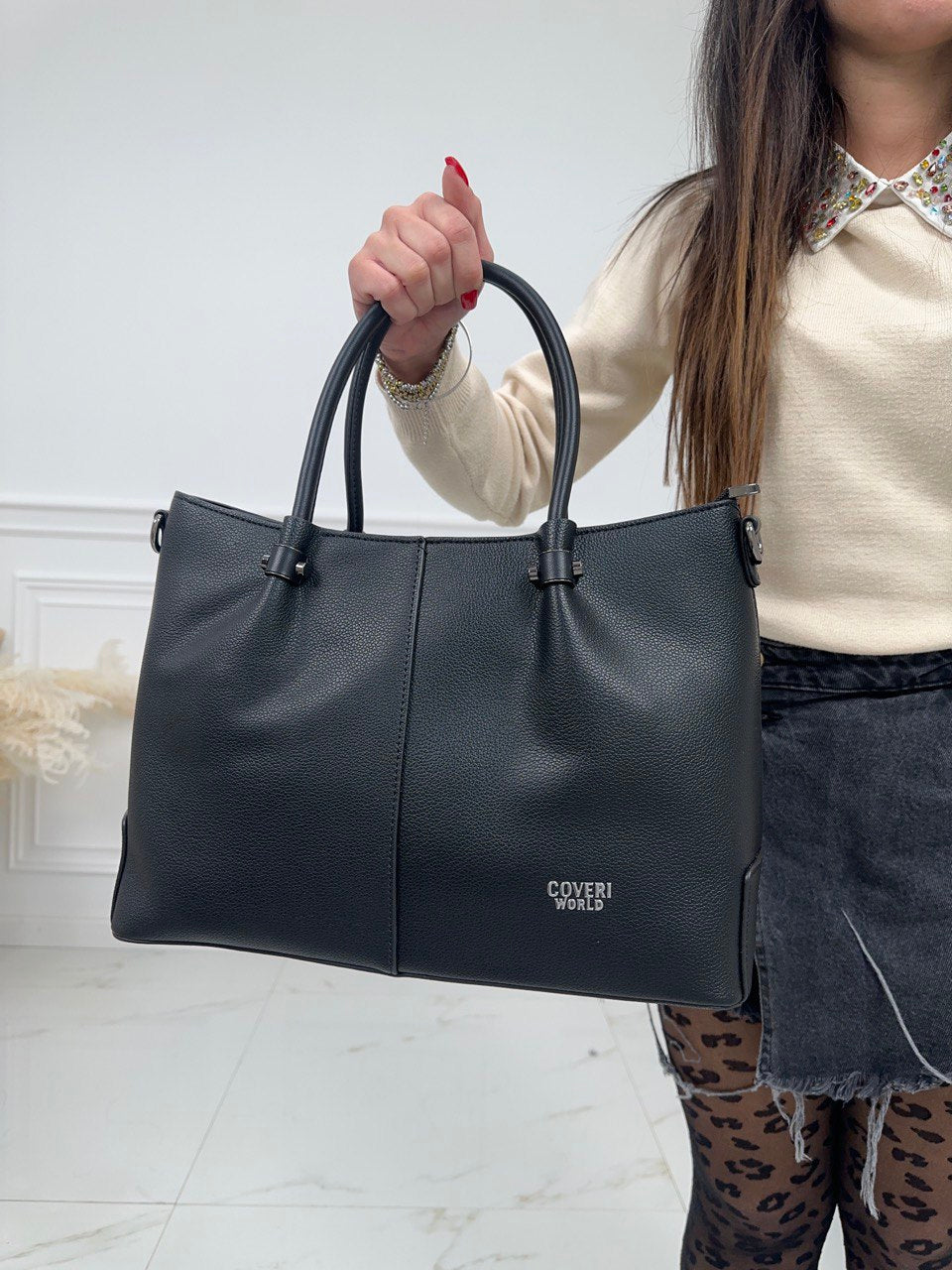 Borsa in ecopelle , chiusura con cerniera , manico da braccio e tracolla da spalla removibile.