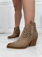 Camperos a punta in camoscio traforato , chiusura con cerniera e tacco largo di 7 cm