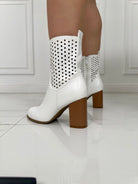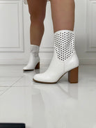 Stivaletti in ecopelle con gambale traforato , chiusura con cerniera laterale , e tacco largo di 7 cm
